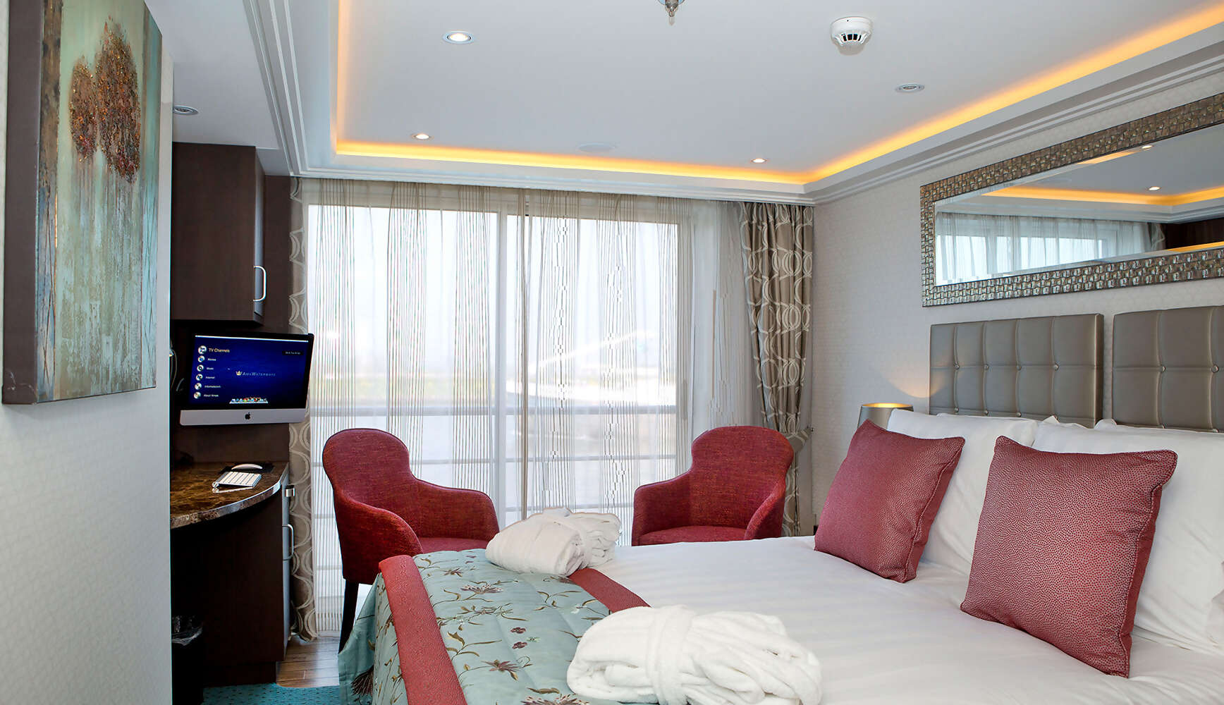 AmaWaterways award-winning AmaSonata sings her melodious tune down Europe’s great rivers. Most accommodations have twin balconies, so you can enjoy the ever-changing scenery however you wish, along with amenities like Entertainment-On-Demand, high-speed Internet access and English-language TV stations. A soft color palette in each stateroom calms the mind for relaxation, but when you’re ready to get active, head to the fitness center or up to the Sun Deck to the heated pool. Crisp white tablecloths and napkins grace the tables in the subdued Main Dining Room, while The Chef’s Table specialty restaurant highlights its 5-star multi-course cuisine with gold-hued tones and a twinkling overhead centerpiece. With a stunning Main Lounge, tranquil library, sun-deck walking track, massage and hair salon, and gift shop, you’ll never find a dull moment—and will sing AmaSonata’s praises while sailing on board.